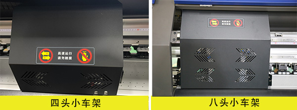 兩款設備都配備有防撞小車架,小車頭可上下調節,還可以根據不同打印介質的厚度調整噴頭位置高低,方便快捷,安全高效;小車架具有自動測紙、防蹭紙功能,若有耗材翹邊,打印自動暫停,可以防止刮傷噴頭�