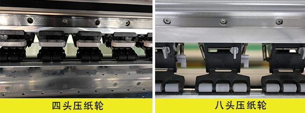 采用美國進口氟橡膠壓紙輪,預防靜電不飛墨,打印尺寸更精準,拒絕褶皺。其中,風影F1808的壓紙輪可以三檔調節,滿足不同厚度的介質打印要求�