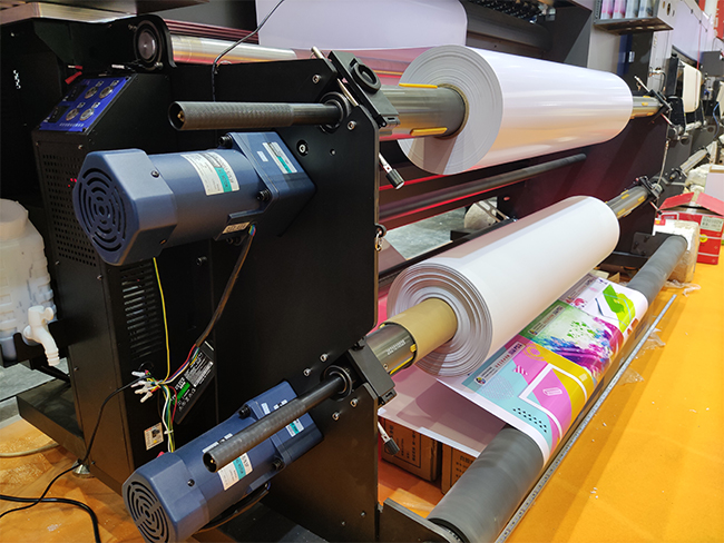配備的自動收放卷系統,可以承�1000�/卷的打印介質,這樣可以避免在高速打印時頻繁上紙的問�,自動收放卷也可以減少工人工作量,減少更換材料時�,提升打印效��