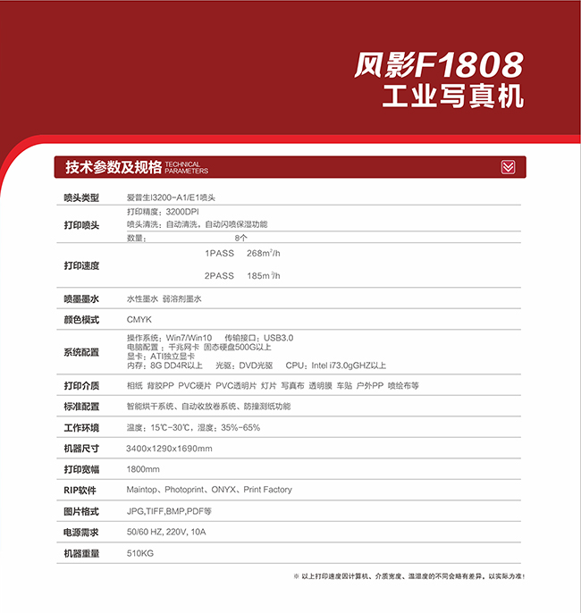 這款設備搭載配備8個愛普生I3200噴頭,生產模式可以達�268�/h,戶內戶外廣告訂單皆可輕松完��