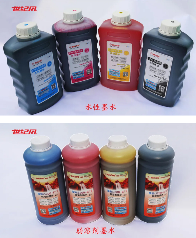 目前,世紀風墨水分為水性墨水和弱溶劑墨水兩種。產(chǎn)品外觀包裝如下圖: