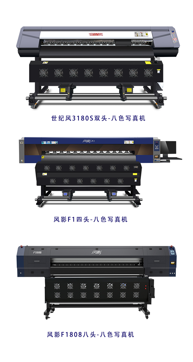 世紀(jì)�(fēng)寫真�(jī)作為行業(yè)的領(lǐng)頭羊,通過長時間的市場�(diào)研,�(jié)合國�(nèi)廣告人的需求,將現(xiàn)有設(shè)備的軟硬件�(jìn)一步升級,研發(fā)出雙頭、四頭以及八頭的八色�(jī)系列�(jī)型�