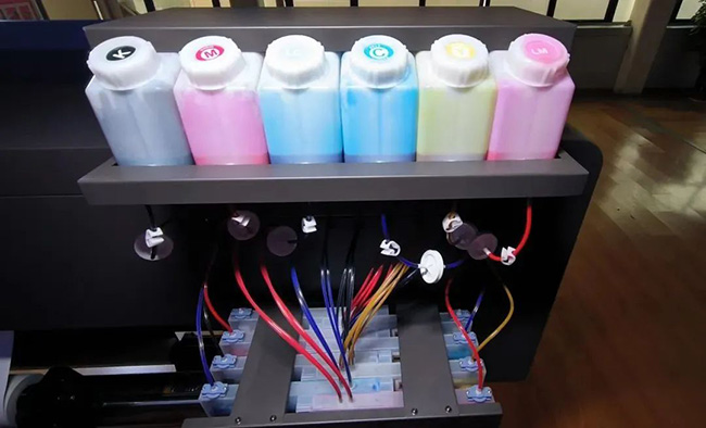 二級大容量(每個大墨盒可容�5L墨水)供墨系統,可滿足設備長時間高速打印不斷墨,而且添加墨水十分方便。這種供墨方式可以使寫真機打印的每時每刻都能穩定供墨,不易出現斷墨現象�