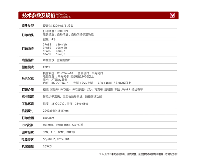 THK靜音直線�(dǎo)軌,壽命更長(zhǎng),運(yùn)行更平穩(wěn);電�(jī)采用知名雷賽伺服�(wú)刷一體電�(jī),可�(shí)�(xiàn)高精度驅(qū)�(dòng)線性解碼,誤差更小,精度更高�二級(jí)大容量供墨系�(tǒng),全封閉高保濕墨棧,�3檔調(diào)節(jié)壓紙輪等配置,為�(shè)備高速高清出圖提供保障,讓廣告人智享打印�