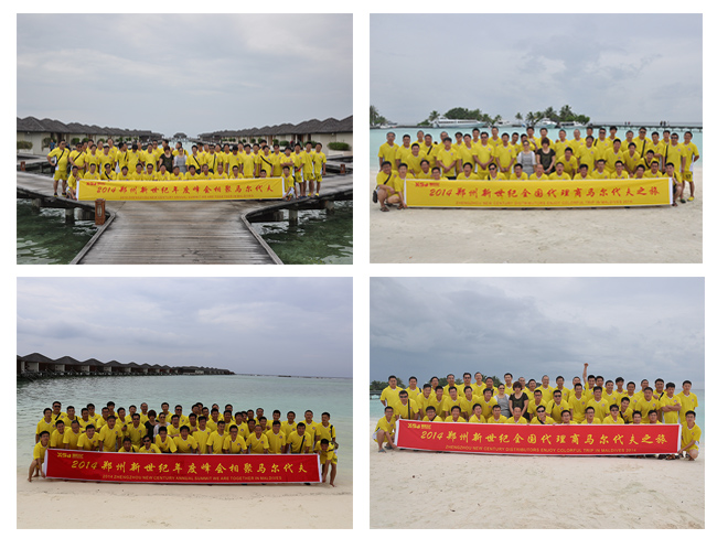 ? ?鄭州新世紀十分重視同代理商之間的交流,終端客戶直接面對的是代理商,加強同代理商之間的交流才能及時了解終端用戶的需求點,同時也能將新世紀的服務要求更直接的傳遞給代理商,有利于更好的服務于廣大用戶。2012年齊聚新馬泰,2013年相聚塞班島,2014年又再一次聚首馬爾代夫。隨著新世紀服務體系的不斷完善,終端用戶將享受到更加優質的產品和服務。