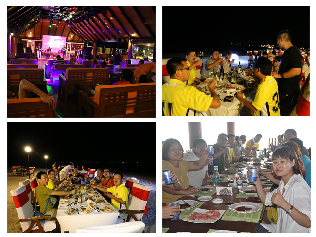 ? ?閑暇之余,金董和代理商們在馬爾代夫浪漫的白色沙灘展開了沙灘足球,一改往日工作上的嚴肅狀態,完全沉浸在的愉快的時光中。夜晚大家在海灘邊享受美味燒烤,感受異域風情。
